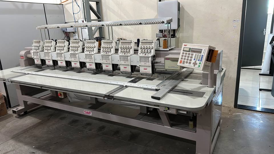 Máquina de bordado industrial de alto desempenho, ideal para produções em larga escala, como confecções, estamparias e bordados personalizados. Com múltiplas agulhas e cores, ela permite bordar simultaneamente em várias peças, aumentando a produtividade e eficiência.