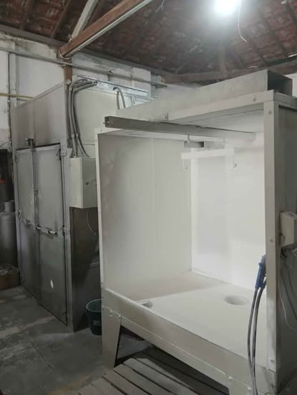Cabine de pintura eletrostática com estufa e carrinho gancheira!!