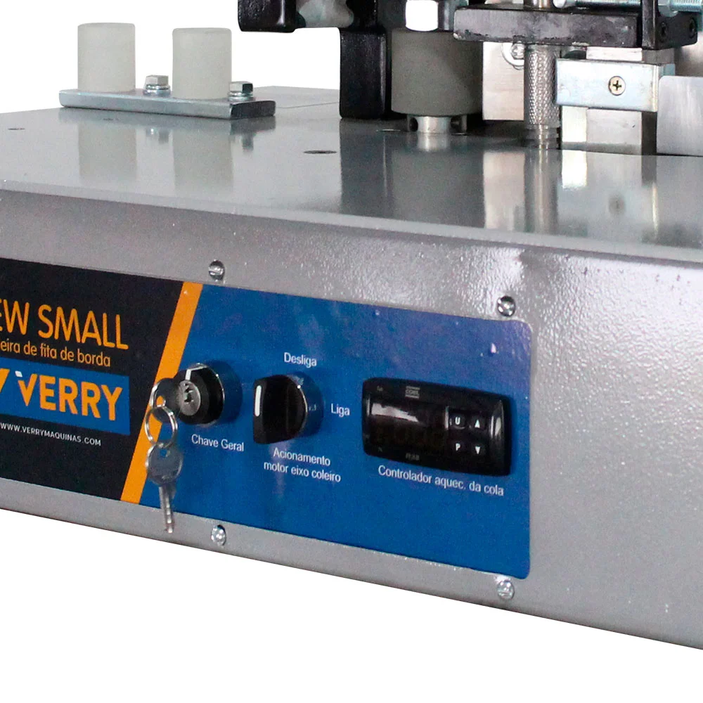 A Coladeira de borda New Small que atende ao marceneiro que dispõe de pouco espaço na oficina ou que precisa realizar ajustes em uma obra. Também muito utilizada por hobistas que querem dar um acabamento mais profissional. Compacta e robusta dispõe de um coleiro móvel que corrige imperfeições dando qualidade ao trabalho realizado e um destopador manual tipo guilhotina de fácil utilização. Também dispõe de controlador de temperatura digital e limpeza rápida do recipiente de cola simplificando a operação.