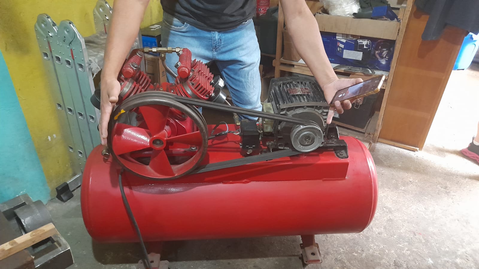 Compressor de ar industrial de alta performance, reservatório de grande capacidade, ideal para diversas aplicações e pronto para uso.