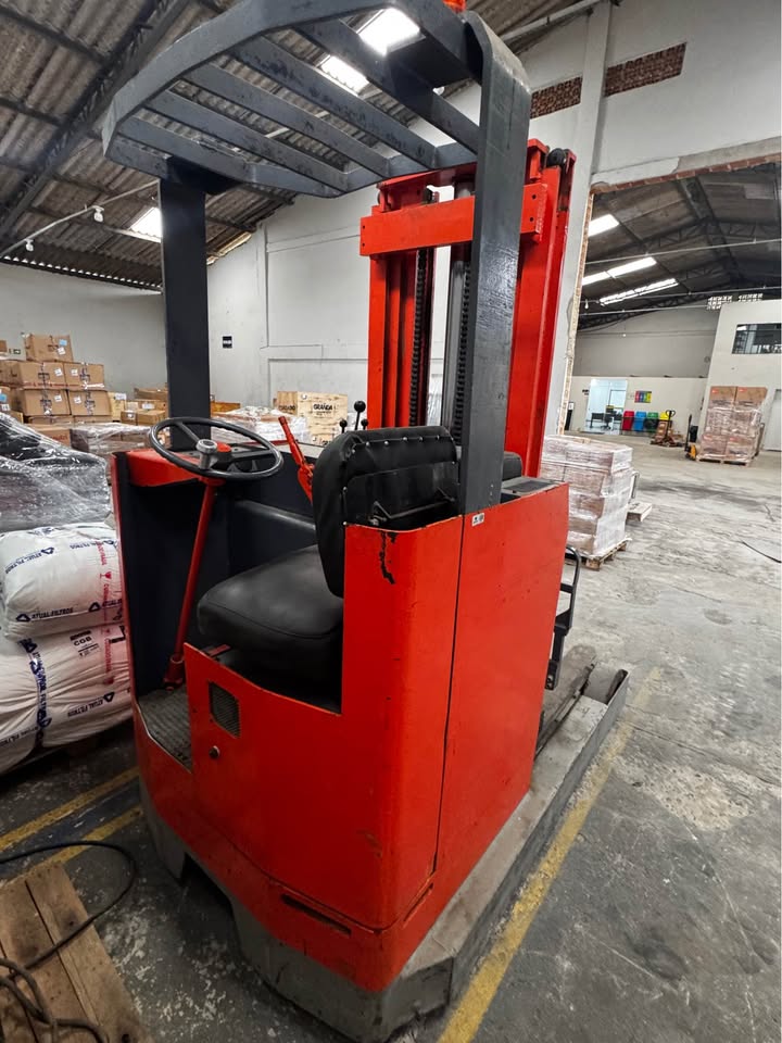 Empilhadeira retrátil elétrica, modelo ETV 20 G115, fabricada em 1986, própria para operação em galpões, armazéns e áreas internas com corredores estreitos.
