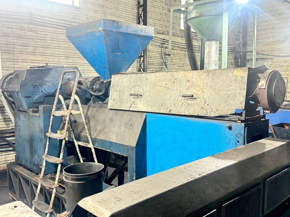 Linha de extrusão completa duas extrusoras: uma com rosca 90 e uma com rosca 70.