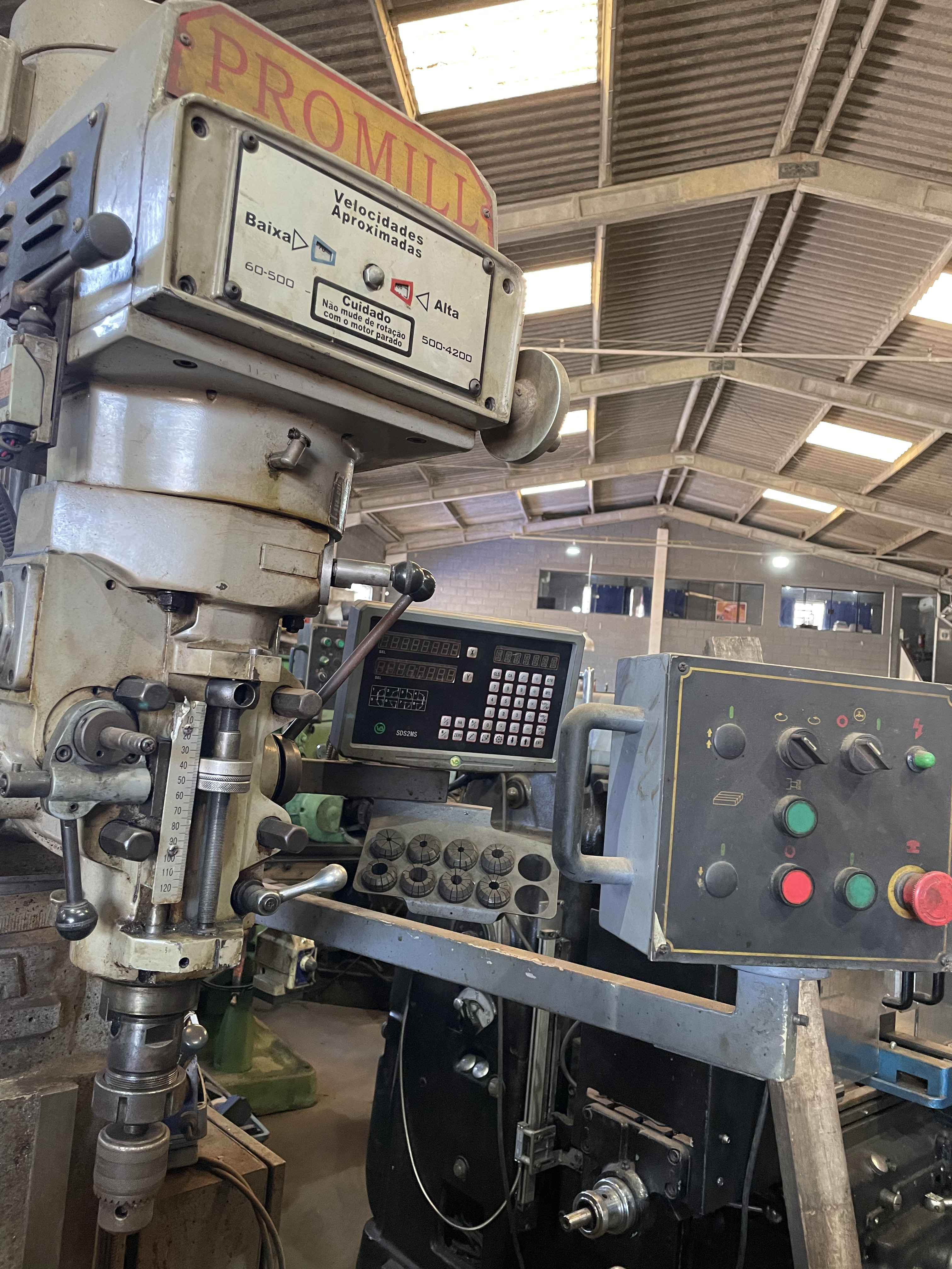 A Fresadora Promill com cone ISO 30 é uma máquina versátil e robusta, projetada para atender às necessidades de usinagem de precisão em oficinas mecânicas e indústrias. O sistema de fixação ISO 30 oferece um engate rápido e seguro para uma ampla gama de ferramentas de fresamento, garantindo estabilidade e eficiência durante o corte. Sua construção sólida e o design ergonômico permitem operações precisas em diversos materiais, sendo ideal para trabalhos de fresamento, faceamento, contornagem e outras operações de desbaste e acabamento. A Promill com ISO 30 é uma excelente opção para quem busca confiabilidade e desempenho em suas tarefas de usinagem.