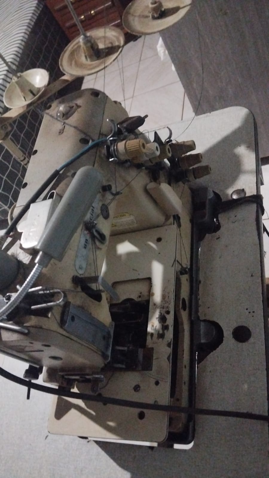 Máquina de costura industrial, equipamento robusto para costura de tecidos pesados, com vários recursos e acessórios.