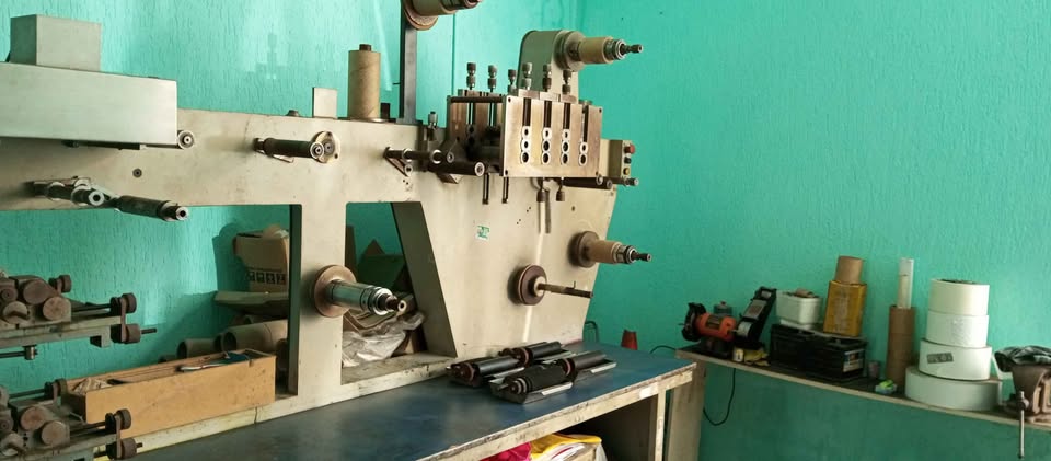 Inclui também várias facas e cilindros porta clichê e tintas diversas.
