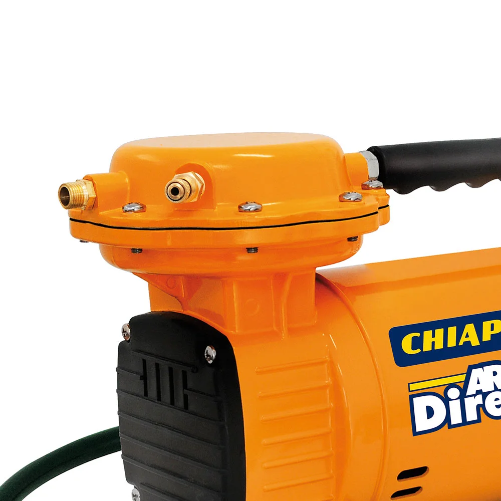 - Possui sistema de trabalho por membrana, isento de óleo, motor monofásico Bivolt com chave seletora de tensão 110/220V, válvula de segurança e filtro de ar