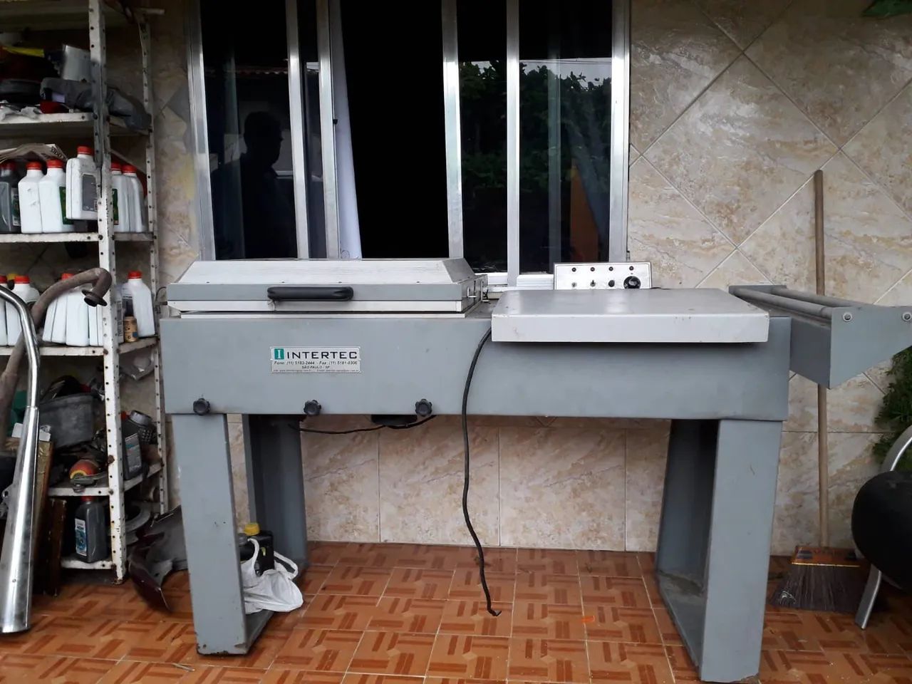 Prensa térmica conjugada Intertec, ideal para embalar e com selagem e encolhimento térmico. Equipamento em ótimo estado de conservação. Bobina de 800 cm voltagem 220v