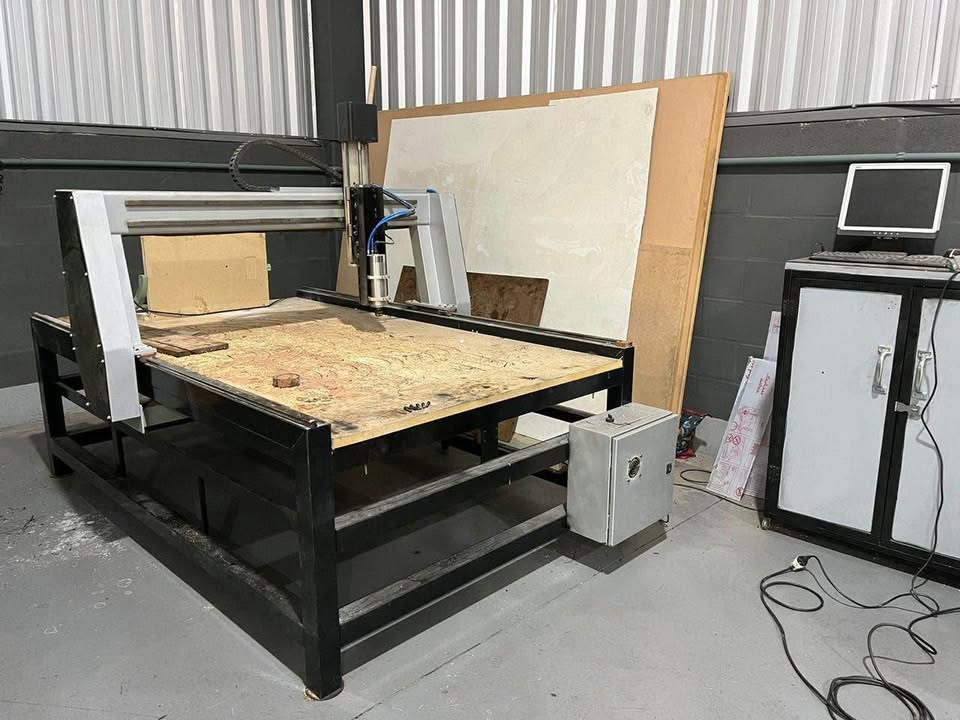 É uma máquina de corte e gravação controlada por computador. Ela usa o software Mach3 para interpretar arquivos de desenho.