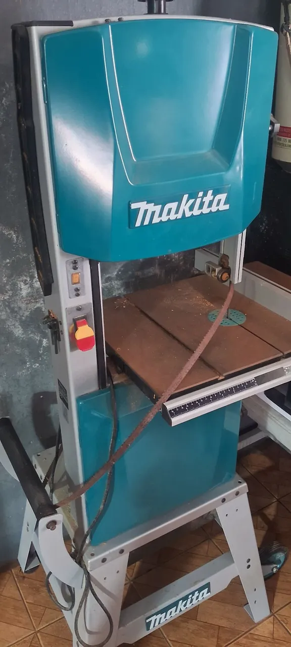 Serra de fita Makita, ideal para cortes precisos em diversos materiais. Design robusto e eficiente para trabalhos profissionais.
