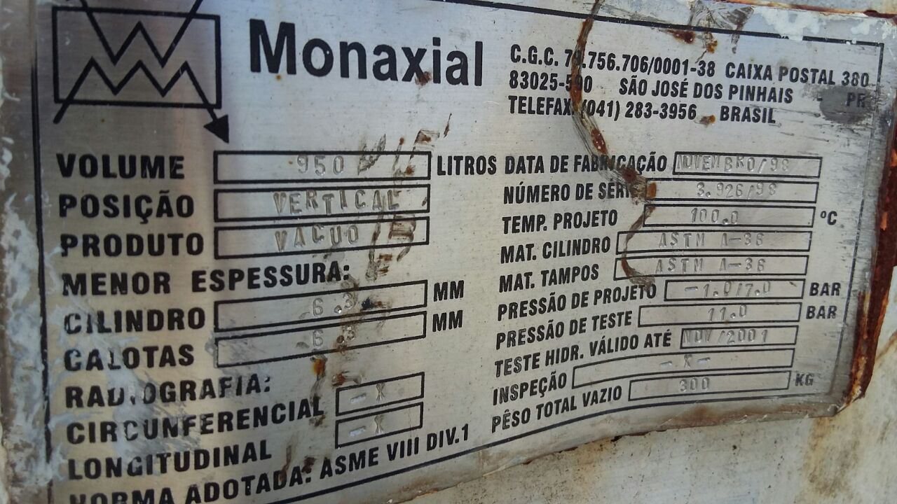 Tanque Cilindro Pulmão Compressor 1000L 7 Bar com NR13 C1329