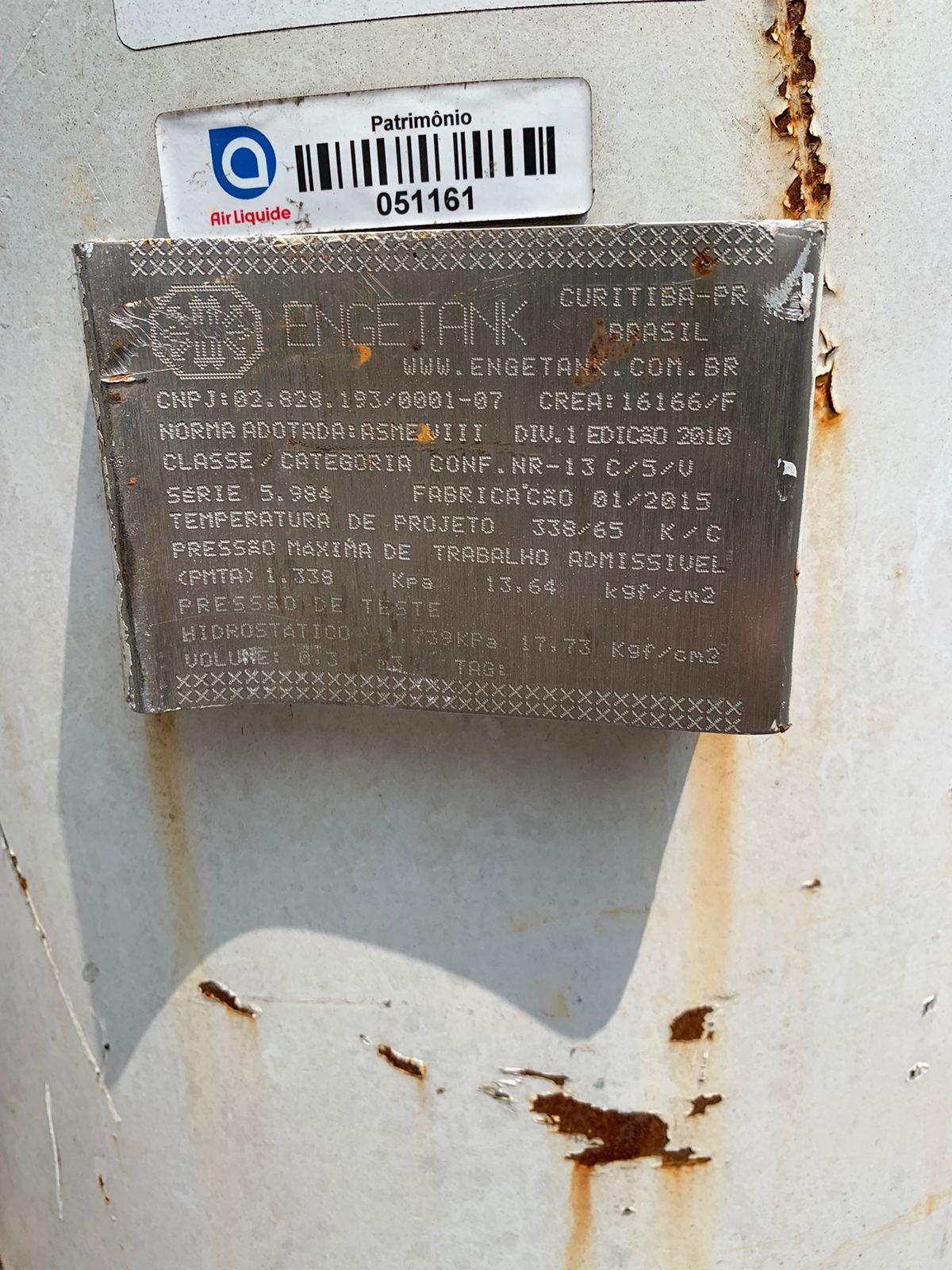 Tanque Cilindro pulmão Compressor 400L 13,6 bar NR13 - C6524