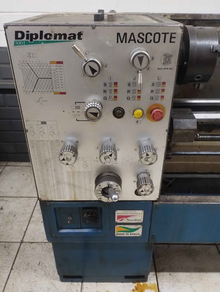Torno mecânico convencional, compacto e versátil, da linha Mascote Nardini, ideal para oficinas, ferramentarias e trabalhos de manutenção.