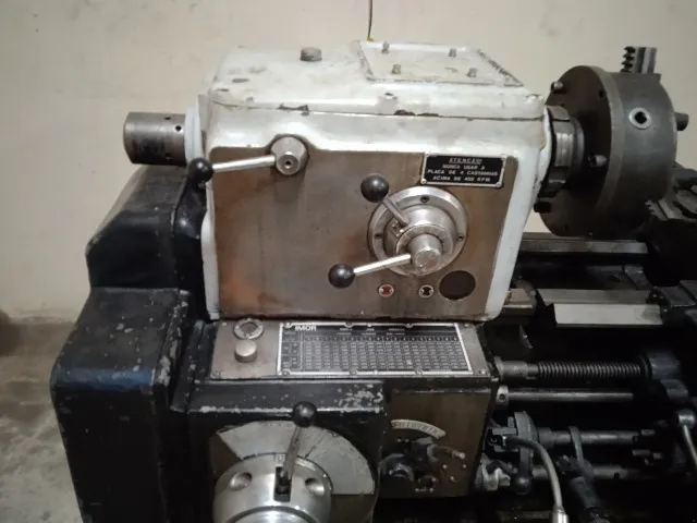 Torno Mecânico IMOR robusto 400x1000mm, revisado, contra ponto e duas lunetas, castanha de três e castanha de quatro.