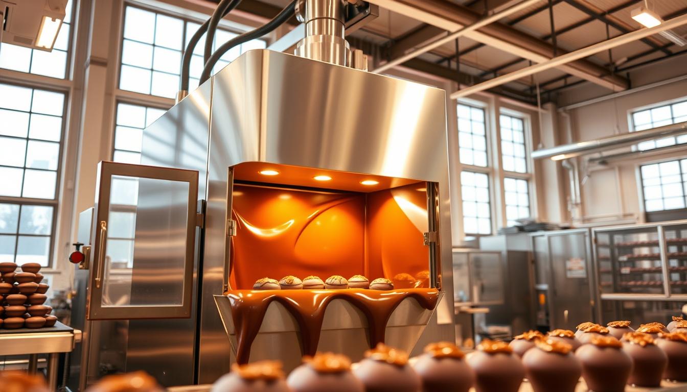 Escolher a máquina certa para banhar chocolates é essencial. Isso ajuda a produzir chocolates de alta qualidade.