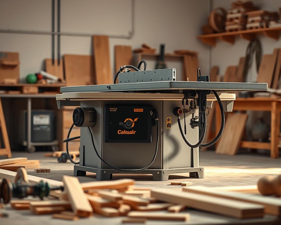 Uma esquadrejadeira é essencial na marcenaria. Ela corta madeira e outros materiais com precisão. Isso ajuda a fazer móveis e outros produtos de madeira com perfeição.