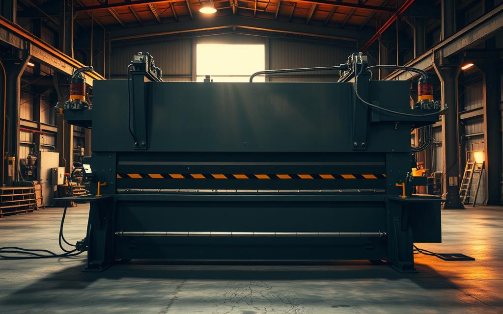 Uma dobradeira hidráulica é essencial na indústria metalúrgica. Ela ajuda a moldar e manipular metais. Isso permite criar peças complexas com grande precisão.