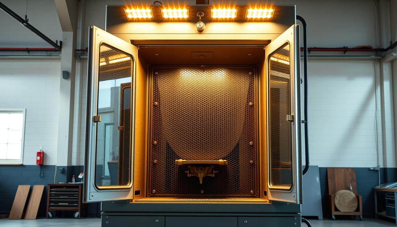Para comprar com segurança, é vital verificar o estado da cabine de jateamento usada. Essa verificação ajuda a encontrar problemas e assegurar que o equipamento esteja em perfeito estado.