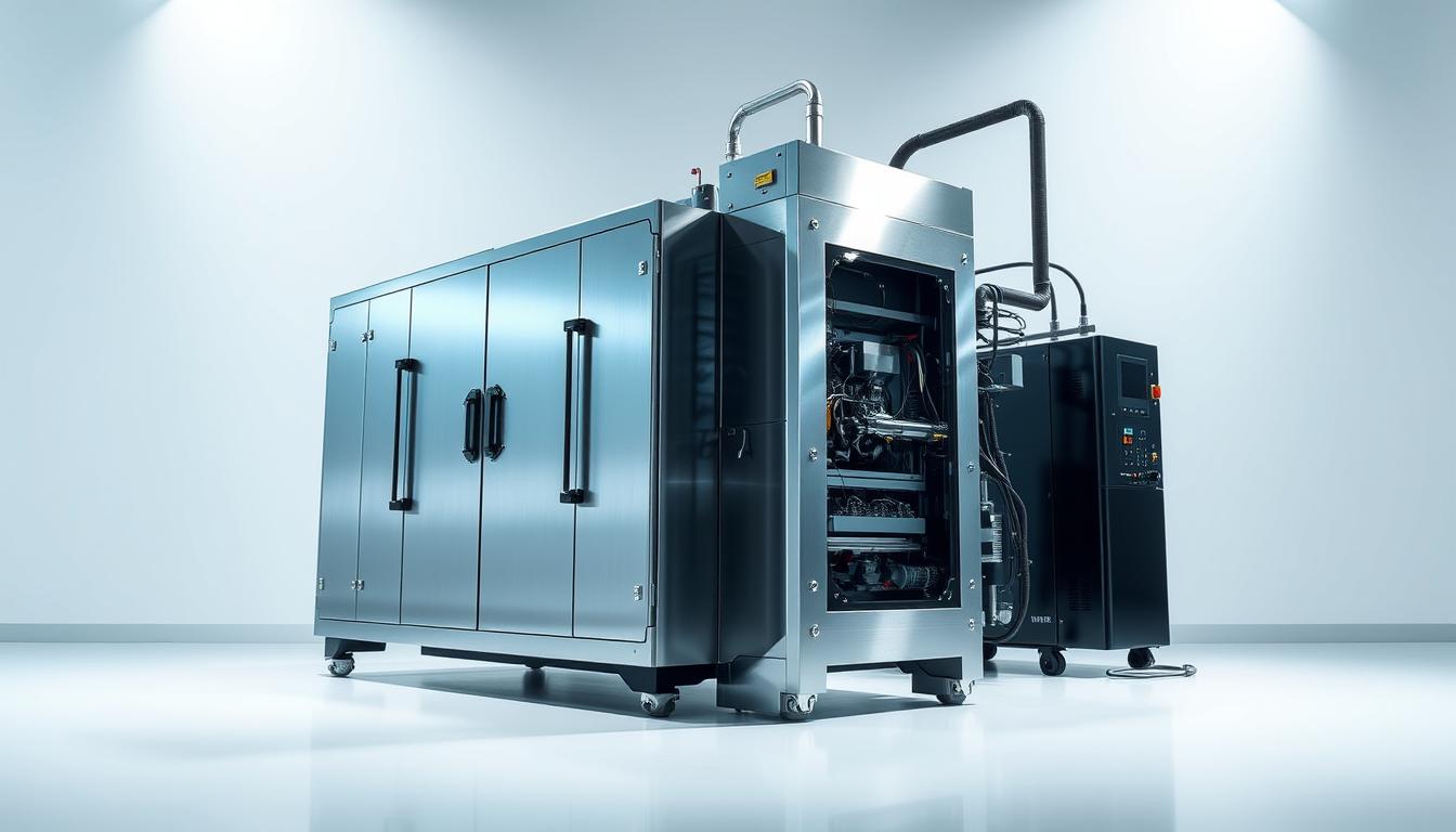 Os elementos centrais de uma metalizadora a vácuo compreendem a câmara de vácuo, sistemas de bombeamento, fontes de evaporação e sistemas de controle.