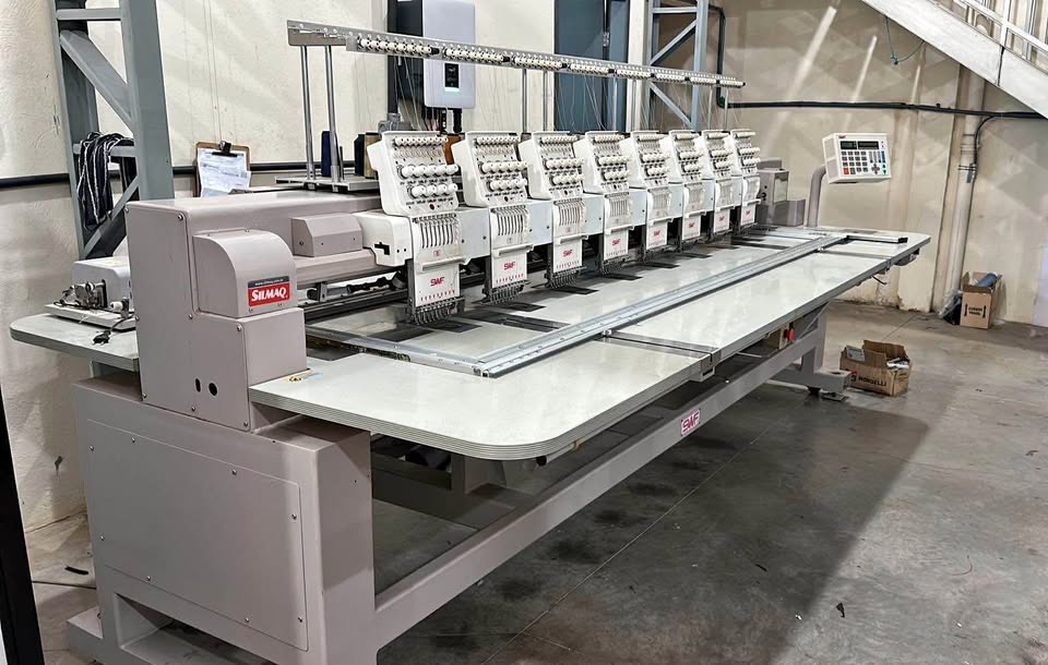 Máquina de bordado industrial de alto desempenho, ideal para produções em larga escala, como confecções, estamparias e bordados personalizados. Com múltiplas agulhas e cores, ela permite bordar simultaneamente em várias peças, aumentando a produtividade e eficiência.