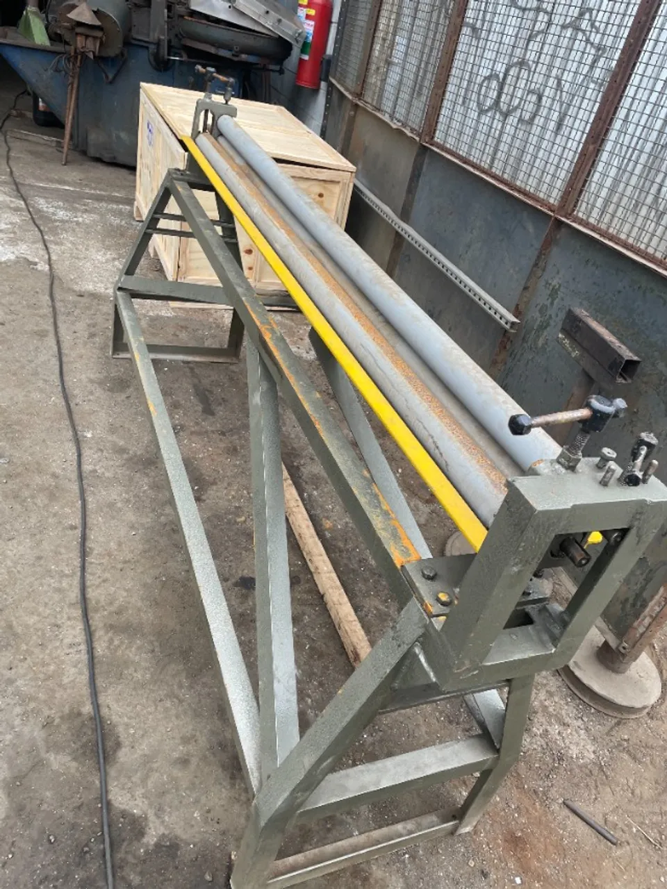 Calandra manual em ótimo estado de conservação, pronta para uso. Perfeita para curvar chapas metálicas com precisão e praticidade.