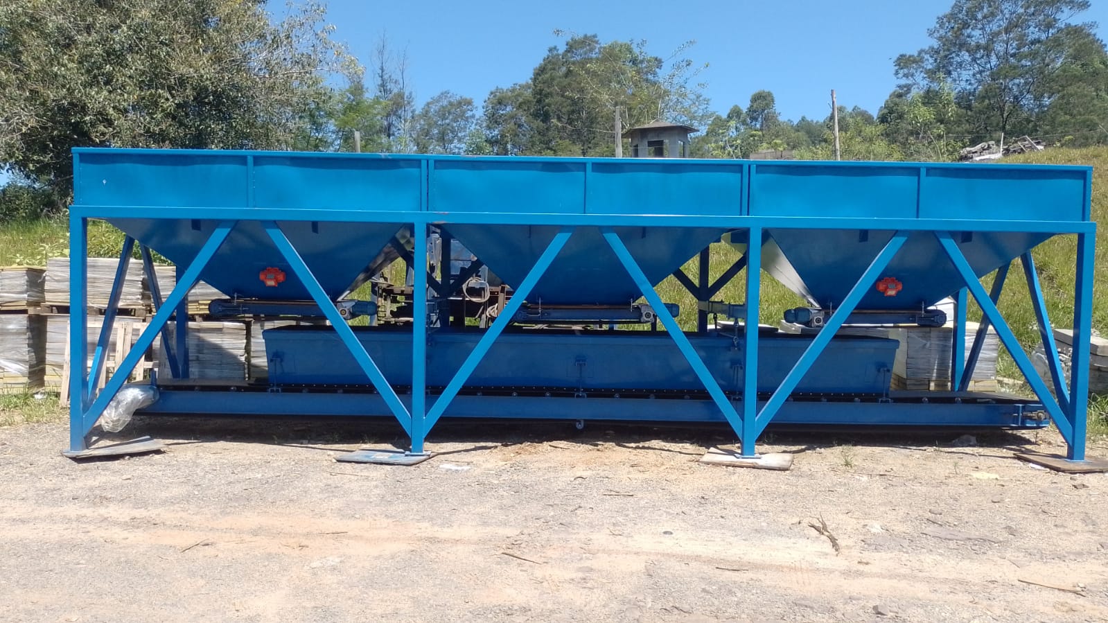 É um equipamento usado para dosar, pesar e misturar materiais de forma precisa e automatizada, com balança automático pra pesagem três cubas.