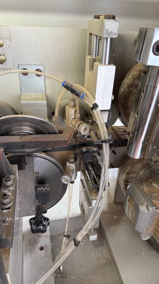 A Coladeira automática 5 grupos Razi Classic Top é usada em marcenarias para aplicar fitas de borda em painéis de MDF, MDP ou aglomerado, garantindo acabamento profissional e durável.