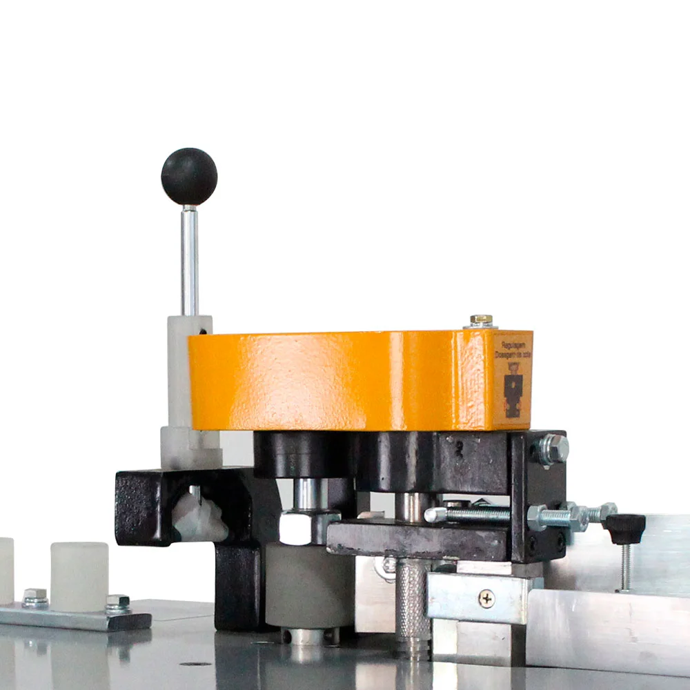 A Coladeira de borda New Small que atende ao marceneiro que dispõe de pouco espaço na oficina ou que precisa realizar ajustes em uma obra. Também muito utilizada por hobistas que querem dar um acabamento mais profissional. Compacta e robusta dispõe de um coleiro móvel que corrige imperfeições dando qualidade ao trabalho realizado e um destopador manual tipo guilhotina de fácil utilização. Também dispõe de controlador de temperatura digital e limpeza rápida do recipiente de cola simplificando a operação.