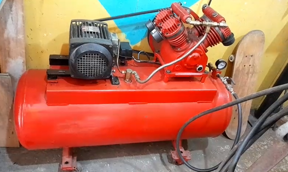 Compressor de ar industrial de alta performance, reservatório de grande capacidade, ideal para diversas aplicações e pronto para uso.
