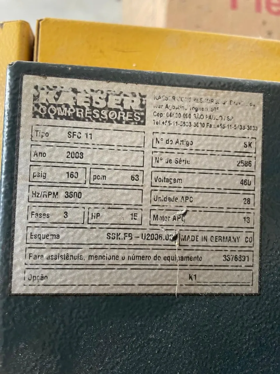 Compressor de ar comprimido de parafuso Kaeser SFC 11 Sigma, equipamento industrial de alta performance para diversas aplicações.
