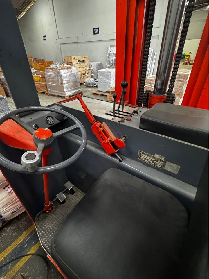 Empilhadeira retrátil elétrica, modelo ETV 20 G115, fabricada em 1986, própria para operação em galpões, armazéns e áreas internas com corredores estreitos.