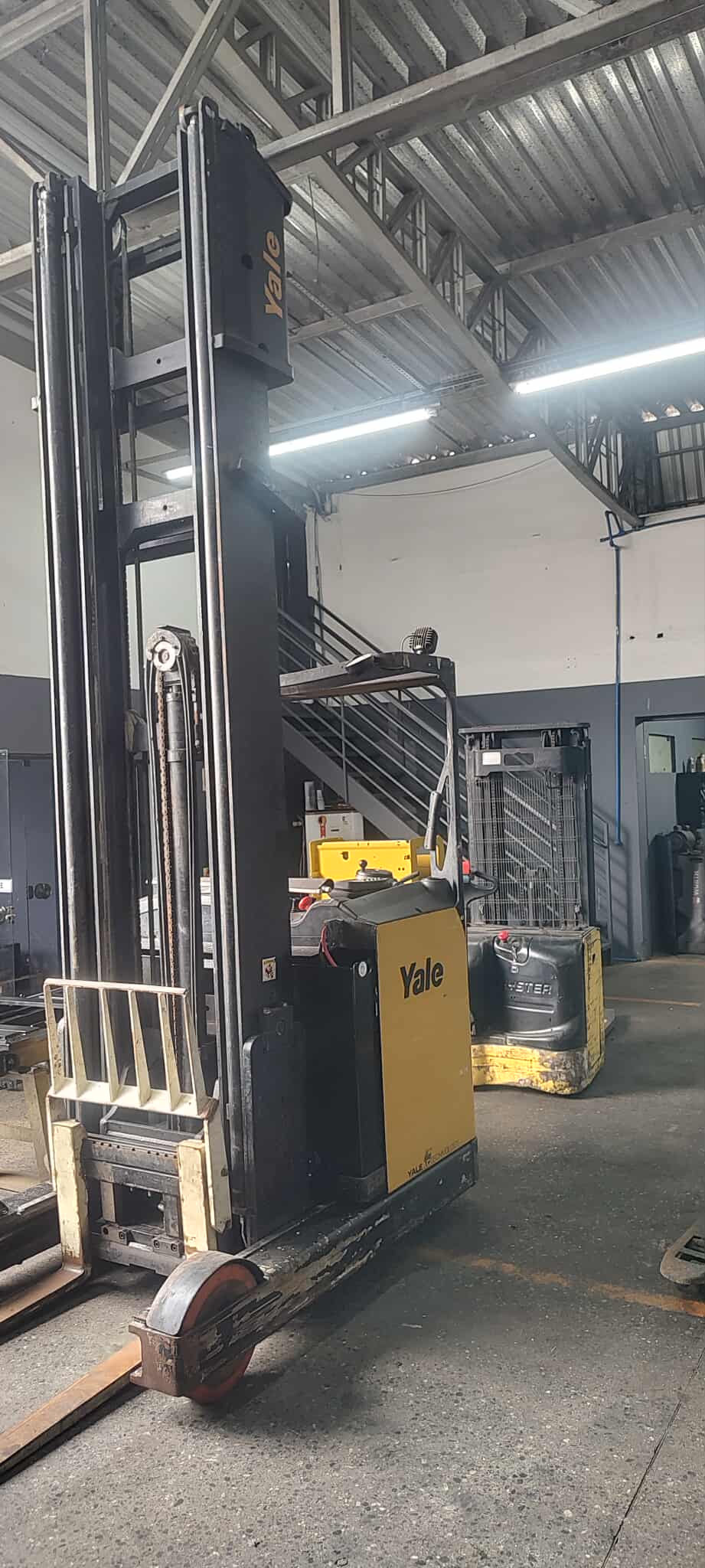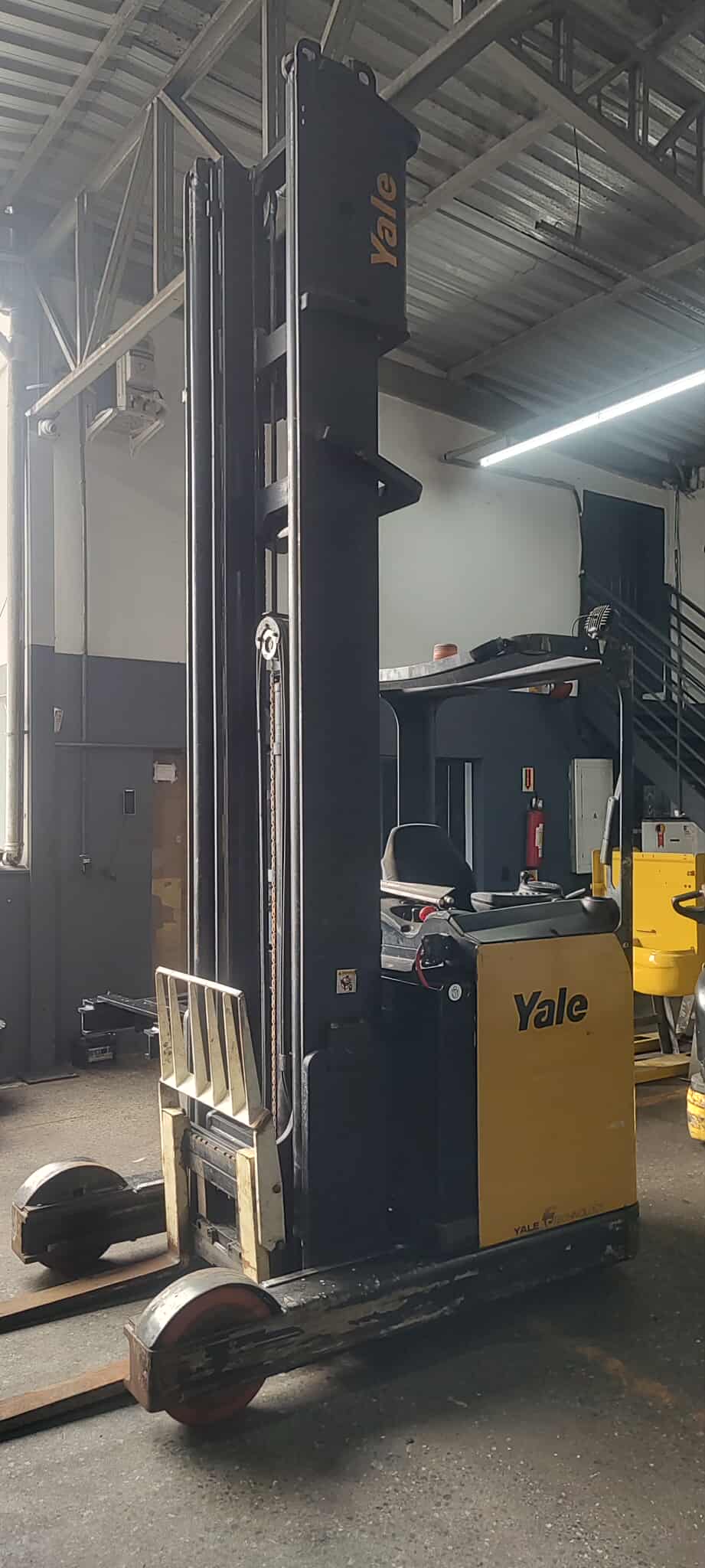 Empilhadeira Elétrica Retrátil YALE MR16, com capacidade de carga e alcance elevado.