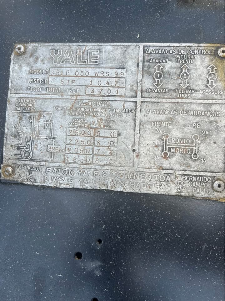 Empilhadeira yale toda reformada, 2.500 kg de capacidade, elevação padrã e com motor 6cc Willys.