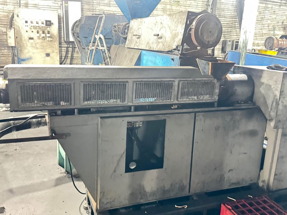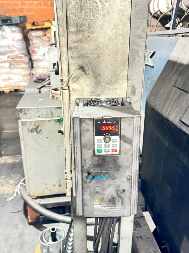 Linha de extrusão completa duas extrusoras: uma com rosca 90 e uma com rosca 70.