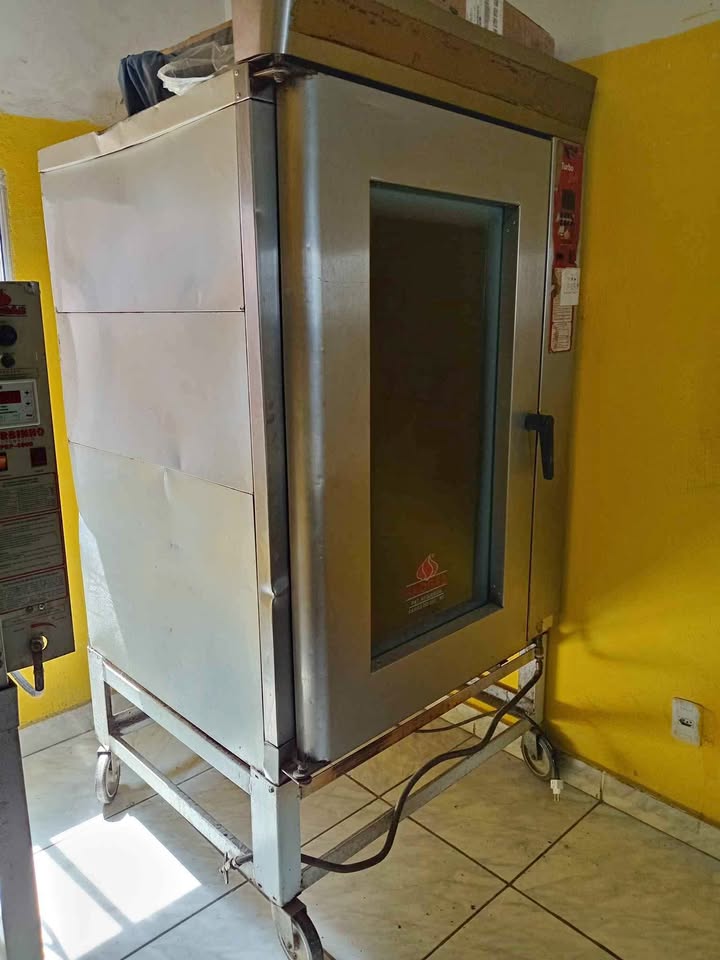 O forno Pro Gás 10 telas é um equipamento industrial usado em padarias, confeitarias e cozinhas profissionais para assar pães, bolos, salgados e diversos alimentos de forma uniforme e eficiente.