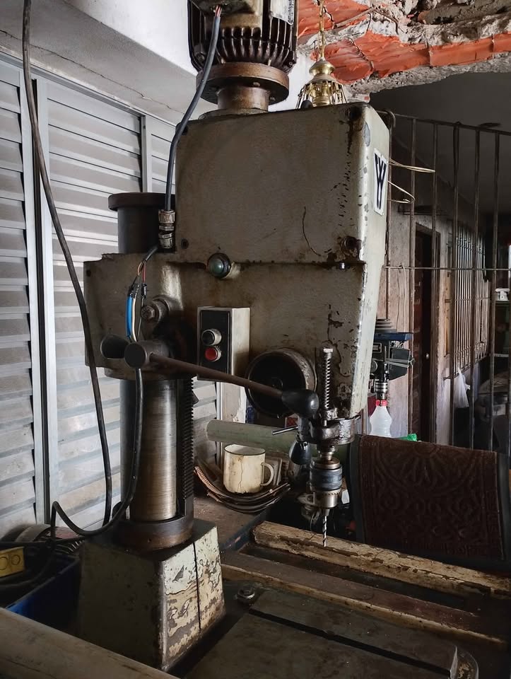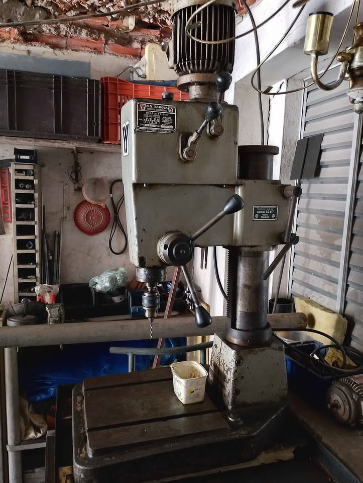 Estrutura fixa de bancada, adequada para furar chapas, peças metálicas, ou outras aplicações de usinagem leve/média.