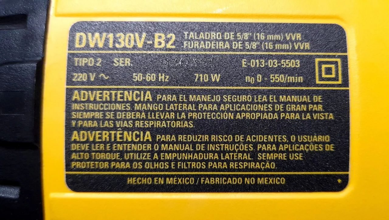 - 710W- 0-550 RPM- 5/8" (16mm)Furadeira de alto torque, com tripla redução de engrenagens. É ideal para uso em estruturas metálicas, perfurações em geral em madeira, metal e plástico e também pode ser utilizada como misturador para argamassas. Empunhadura lateral emborrachada e em 3 posições. Construção modular robusta com engrenagens em aço usinado e temperado para longa vida útil. Velocidade variável e reversível. Gatilho de dois dedos com trava para uso contínuo.- Capacidade Madeira: Ø 39mm- Capacidade Aço: Ø 16mm- Ideal para perfurações contínuas em madeira, metais e plásticos.- Mistura de argamassas, impermeabilizantes e resinas.Comprimento do produto11.02 inAltura do produto4.72 inLargura do produto13.19 inSomente venda. Todos os acessórios originais inclusos.Produto testado (OK) e nunca usado.Retirada no local.