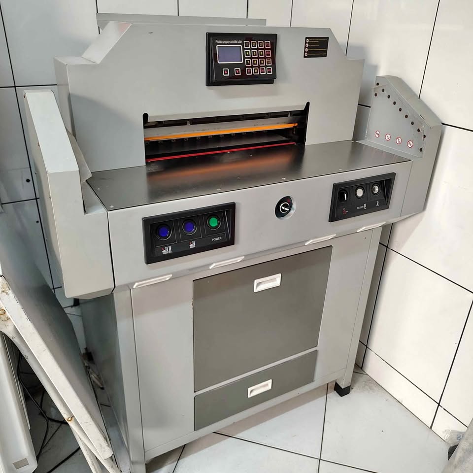 Máquina usada para cortar chapas planas de metal, papel, plástico ou outros materiais de forma reta, precisa e rápida, por meio de uma lâmina acionada automaticamente por motor elétrico.