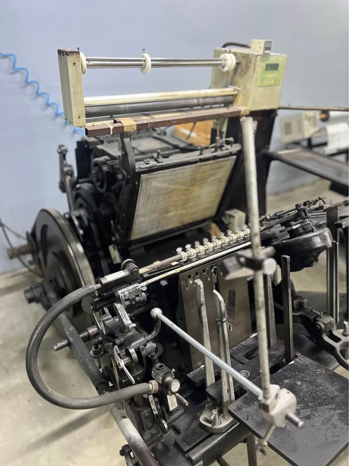 Máquina tipográfica Heidelberg GT 1/4 (leque), robusta e precisa, muito utilizada em gráficas para serviços de acabamento e impressão especial.