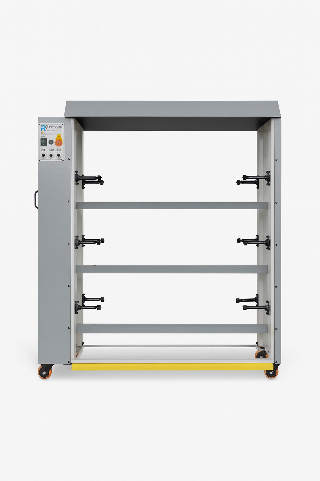 Equipamento projetado para padronizar o filme de verniz aplicado em peças penduradas em gancheiras. A rotação constante garante distribuição regular, evita escorrimentos e corrige pequenas imperfeições da superfície. Ideal para linhas de metalização a vácuo e pintura com alto padrão de acabamento.