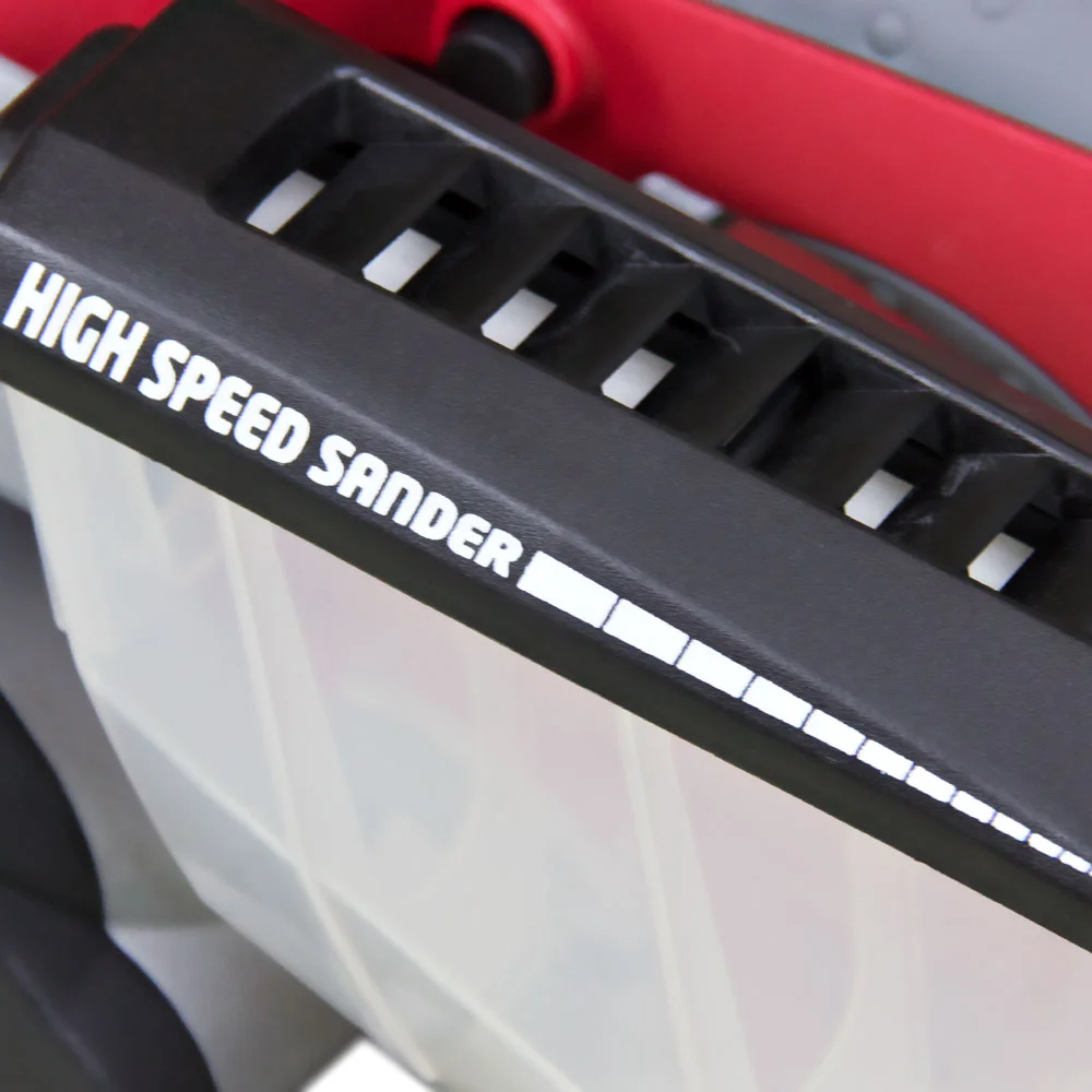 • Troca da lixa fácil e rápida, com capa frontal dobrável para lixamento