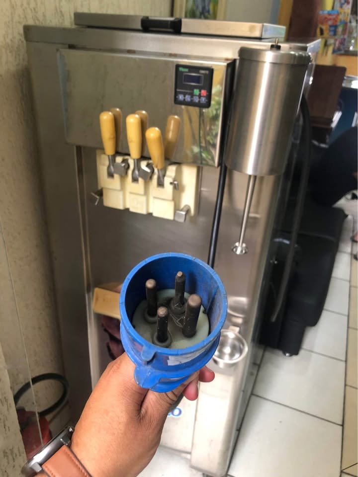 Máquina de sorvete italiano soft, revisada com 3 bicos e motor de milkshake.