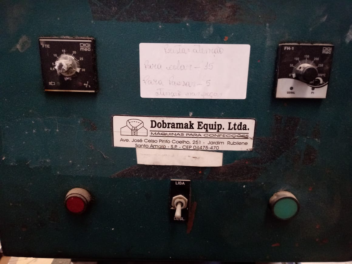 Equipamento que utiliza calor e pressão pra fixar estampas, etiquetas, películas ou pedrinhas termocolantes em tecidos.
