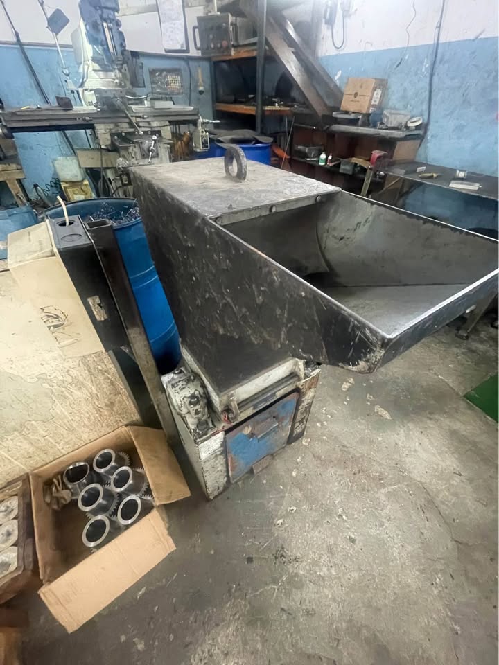 Moinho Rone é uma máquina industrial utilizada para trituração e moagem de materiais plásticos, transformando resíduos em pequenos grãos ou flakes que podem ser reaproveitados na produção.