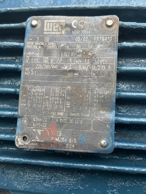 Motobomba d’água trifásica 2 cv 2 hp usada – C2132