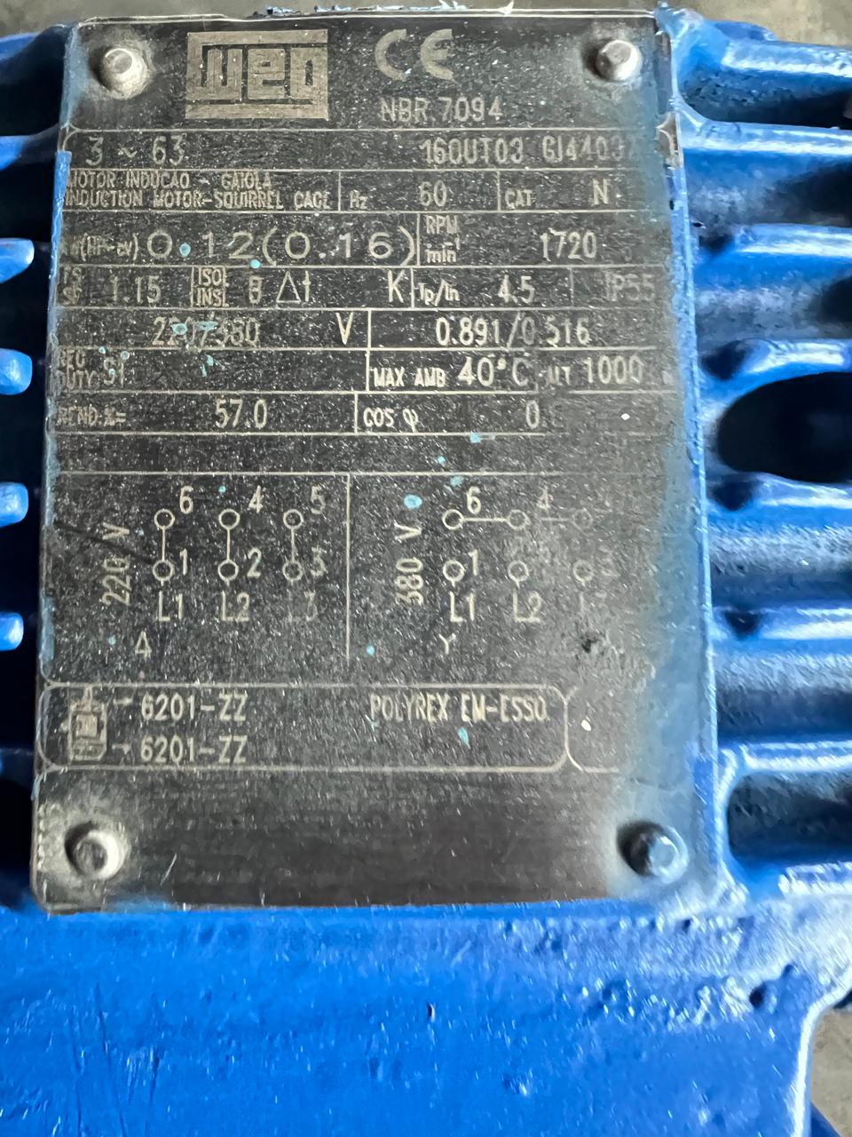 Motor elétrico 1/6 cv 0,16 hp Trif weg 1700rpm 4polos C4030