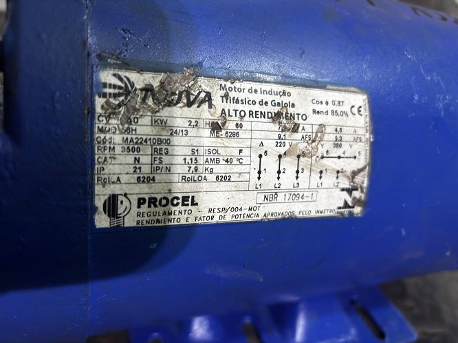 Motor Elétrico 3 Cv Hp 3500 rpm 2p ABERTO usado