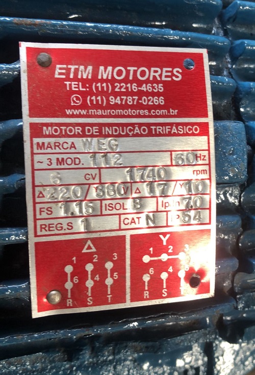 Motor elétrico 6 cv 6 hp Trif weg 1700 rpm 4 pol