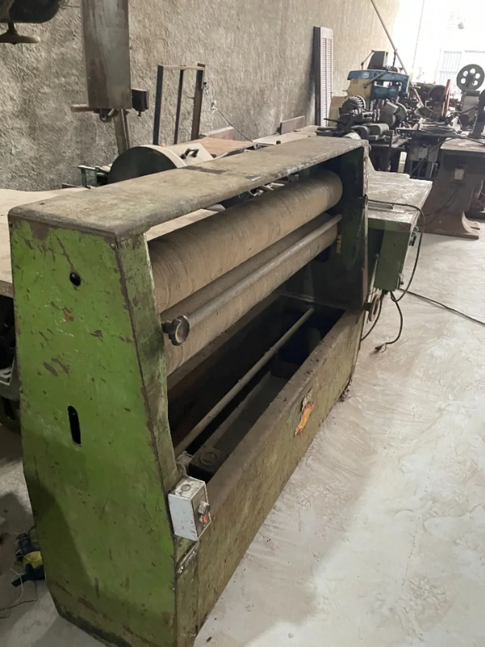 ? Rolo Duplo: Aplica cola nas duas faces da peça. ? Controle de Temperatura: Possui função HEIZUNG (Aquecimento) com termostato analógico, permitindo o uso de cola fria ou adesivos termofusíveis (hot-melt). ? Construção: Estrutura em aço industrial robusta e durável. CONDIÇÃO: ? Status: Usada. Estruturalmente em bom estado.