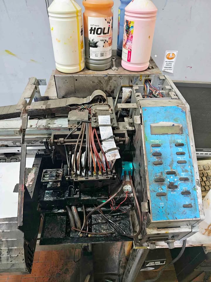 Está com a tinta de sublimação, mas pode trocar para ecosolvente, só a cabeça custa uns 8k