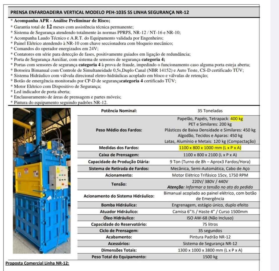 Ideal para compactar materiais diversos de forma rápida e uniforme, garantindo economia de espaço e facilidade no transporte. Máquina robusta e confiável, perfeita para indústrias que buscam agilidade na produção.